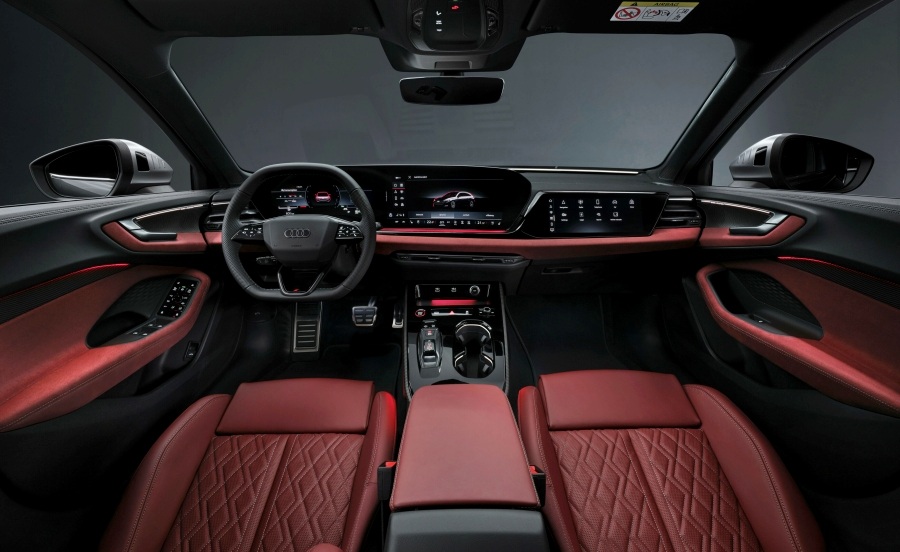 El interior refleja su enfoque deportivo y tecnológico. Se destacan los asientos eléctricos con memoria y calefacción, junto con terminaciones específicas S y materiales de alta calidad. La experiencia digital se potencia con una pantalla panorámica conformada por el Audi Virtual Cockpit de 11,9 pulgadas, la pantalla central MMI táctil de 14,5” y una exclusiva pantalla de 10,9” para el acompañante, basada en Android OS.