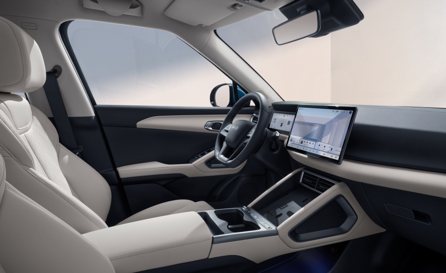 En el interior se destacan el panel de instrumentos digital de 18,8 pulgadas, el sistema multimedia con pantalla central LCD de 12,8” y conectividad inalámbrica con Android Auto y Apple CarPlay, el sistema de interacción de voz de doble área de sonido, aire acondicionado automático con salida para las plazas traseras, carga inalámbrica de teléfonos móviles (50 W), techo solar panorámico, asientos y volante revestidos en símil cuero y puertos USB delanteros (tipo A + tipo A) y traseros (tipo A + tipo C).