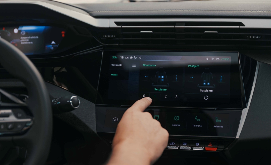 En el interior del habitáculo, el Peugeot i-Cockpit® 3D forma parte de las características únicas de Peugeot. Un volante ergonómico y calefaccionado, que agrupa los mandos del sistema multimedia y de determinadas ayudas a la conducción.