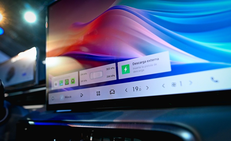 Dentro del equipamiento se destacan la pantalla táctil HD de 15,4 pulgadas, el panel de instrumentos digital de 10,2″, las cámaras panorámicas 360° con visión envolvente, y el volante multifunción en microfibra, con ajuste manual en cuatro posiciones.