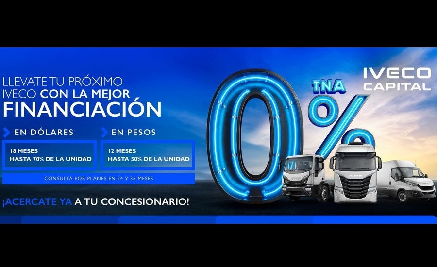 Iveco Argentina, a través de su brazo financiero Iveco Capital, lanzó una propuesta de financiación en dólares y pesos con Tasa Nacional Anual (TNA) 0% para plazos seleccionados, orientada a facilitar la renovación y ampliación de flotas con condiciones preferenciales y cupos limitados.