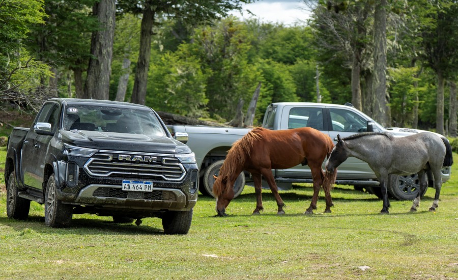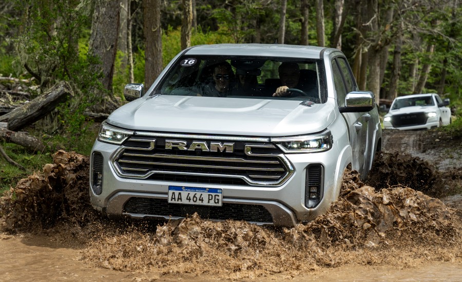 El modelo se distingue por su robustez y refinamiento, especialmente en la variante Laramie, que suma detalles exclusivos: paragolpes y molduras color carrocería, parrilla y espejos cromados, barra de luces auxiliar Ram LED Lightbar y llantas de aleación de 18 pulgadas.