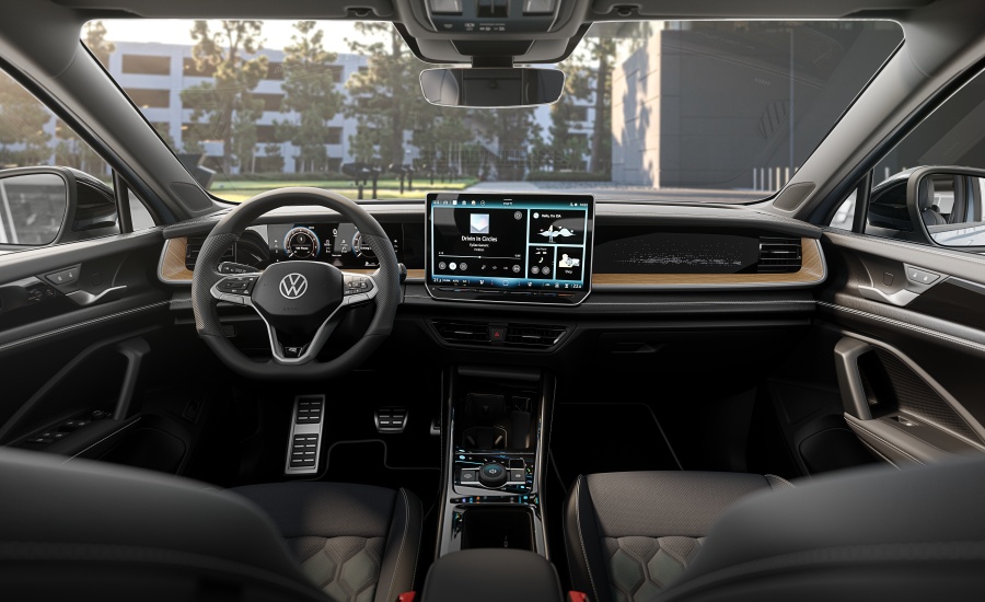 En su interior cuenta con techo panorámico, tapizados en cuero perforado. Las butacas delanteras tienen regulación eléctrica con memoria y están equipados con ventilación, calefacción y masajes con 10 funciones. El cockpit con insertos “R-Line” retroiluminados, “Head-up Display” que proyecta información del tablero en el parabrisas, molduras R-Line en zócalo de puertas delanteras de ingreso al habitáculo, pedalera con apliques símil aluminio y consola central “R-Line”.