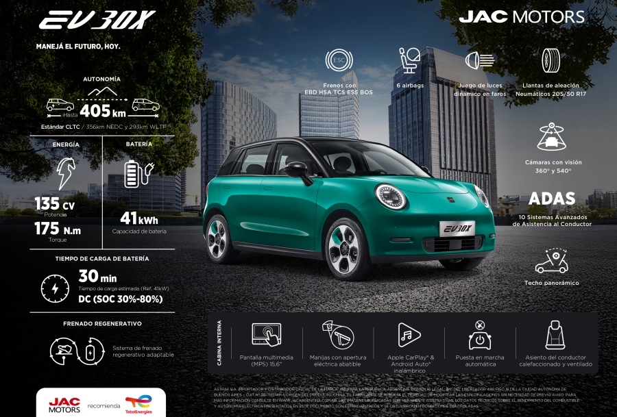 • EV 30X: un hatchback 100% eléctrico posicionado como una opción ideal para la movilidad urbana sustentable.