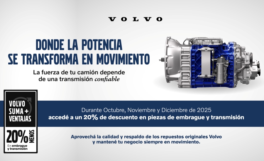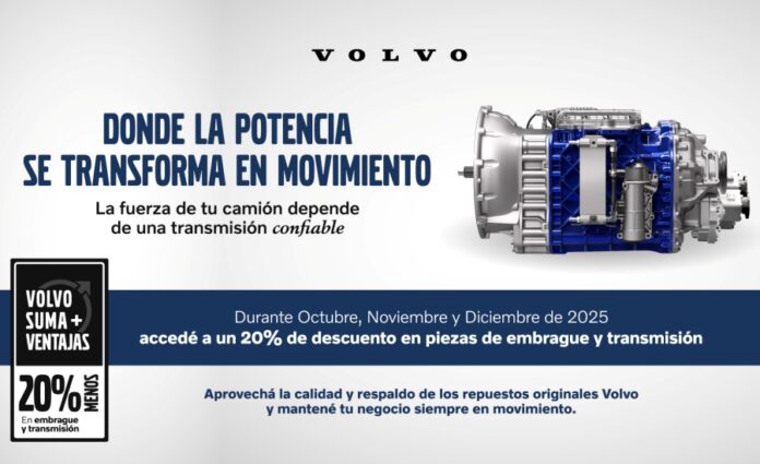 Buenos Aires, octubre de 2025 – Volvo Trucks & Buses Argentina presentó una nueva campaña denominada “Transmisión”, que estará vigente del 1 de octubre al 31 de diciembre de 2025 en toda su red oficial de concesionarios. La iniciativa ofrece un 20% de descuento en todas las piezas vinculadas a la transmisión de los camiones, incluyendo componentes de caja de cambios y embrague.